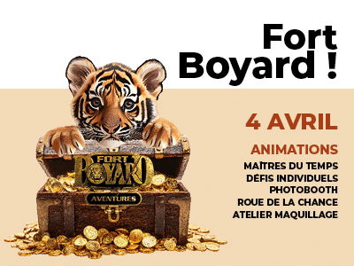 Samedi 4 avril de 14h à 18h au rdc entre Snipes et Etam Préparez-vous à vivre une journée hors du commun… Direction l’univers mythique de Fort Boyard ! Petits et grands aventuriers sont invités à relever des défis, tester leur agilité et partager des moments...